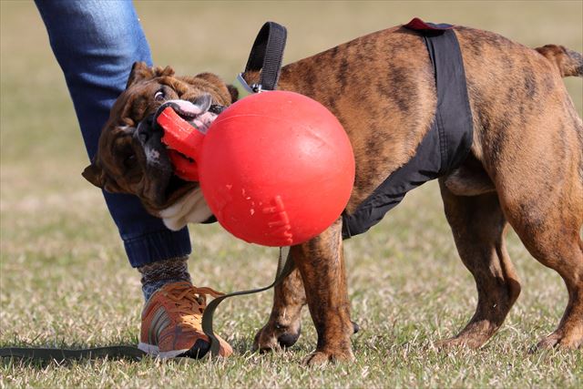 ボール遊び開始直後はジョリーボールを直ぐには離してくれません。
