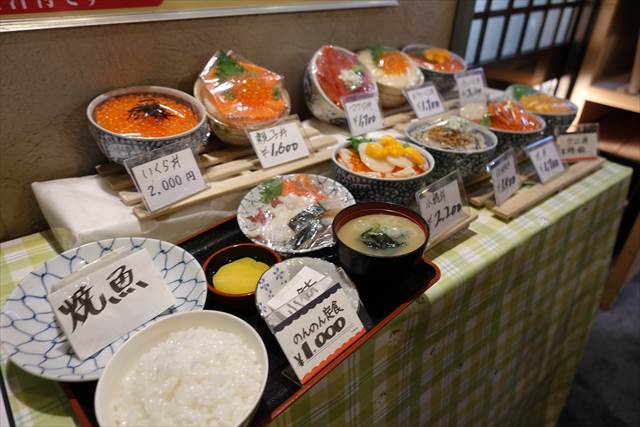 いくらサーモン丼(ママ)と海鮮丼+うに乗せ(500円)をオーダー。