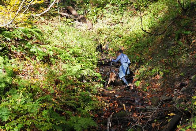 滑りやすいのでグリップ力のある登山靴か長靴を履いた方が良さそうだ。