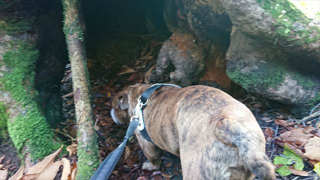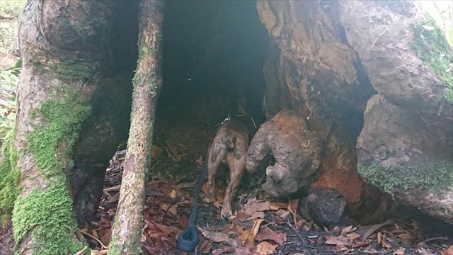 獣の臭いがしたのか勝手に穴倉に入っていくでんすけ君。