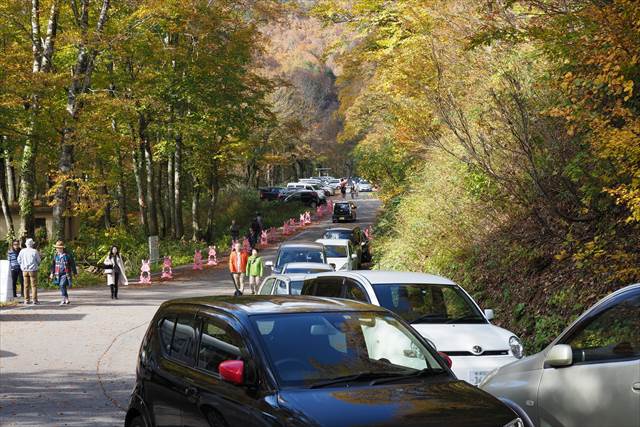 『奥胎内ヒュッテ』の駐車場は溢れかえり路駐の列が続いておりました。