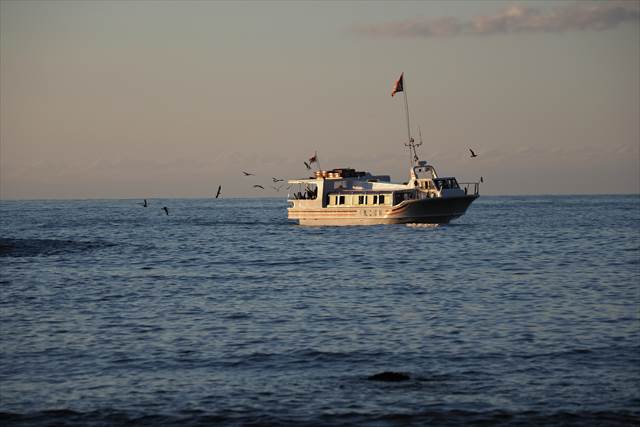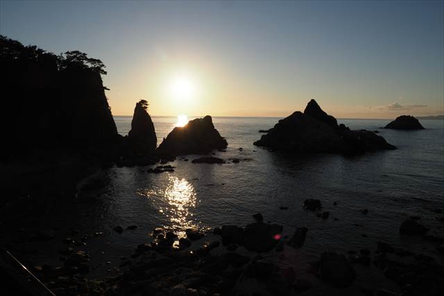 夕日に照らされた眼鏡岩。裏側上空から撮りました。