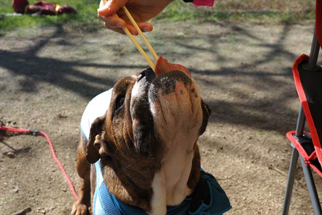 ワンコ用のオヤツは食べないのに、味付なしの焼肉は喜んで食べるというちゃっかりさん。