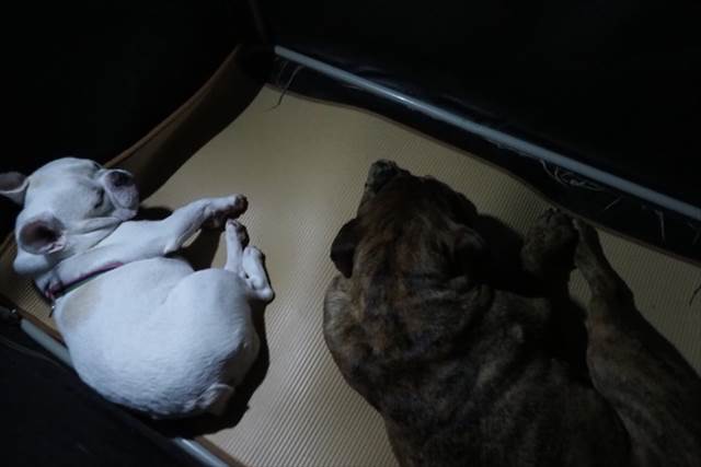 人は疲れてグーグー寝てるのにワンコ達は元気いっぱい。