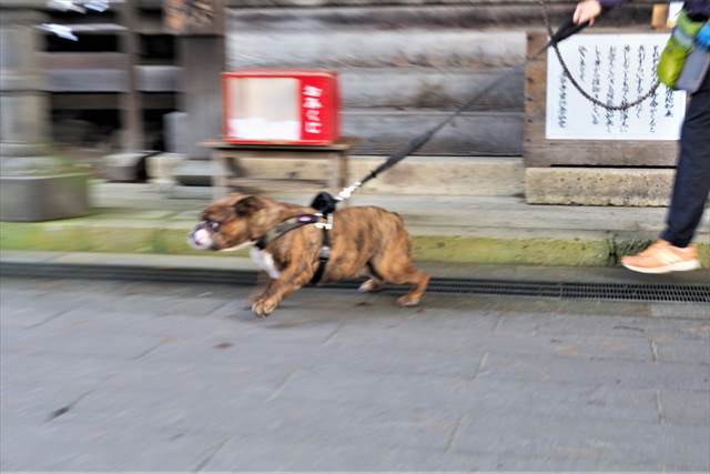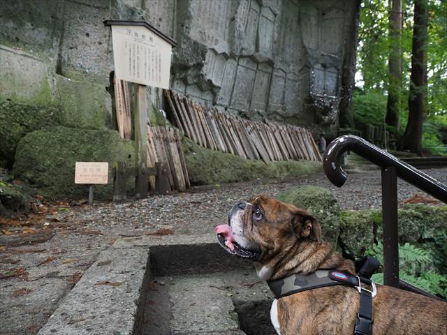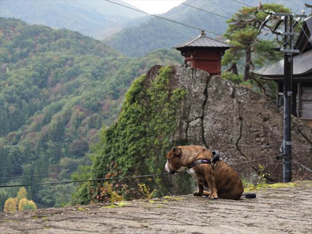 山寺に鼻ペチャ系のワンコは珍しいでしょ?